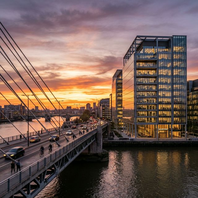 Contemporary façade with energy-efficient glazing and open-plan workspace design.
